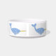 Ce superbe bol pour animaux de compagnie présente une image d'art numérique d'un mignon bébé garçon narval magique bleu. Le corps principal du narval a une texture rugueuse et est bleu tandis que le ventre est d'une couleur bleu gris. Le narval a un œil noir avec une pupille blanche et une corne dorée brillante sur son visage. Il a également une queue et des nageoires délicates.