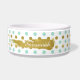 Élégant poivre blanc en céramique / bol d'eau, avec des graphiques d'or et de pois vert menthe. Les graphismes d'un éclat de peinture or, sur le devant, a du texte blanc prêt à personnaliser, pour votre animal de compagnie ou comme une idée cadeau pour tout propriétaire d'animal de compagnie.