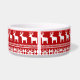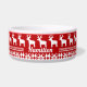 Belle bol de chien de Noël rouge avec de jolis rennes et des flocons de neige blancs sur un mignon motif de vacances rétro. Cool vintage cerf bol avec un nom personnalisé.