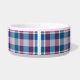 Joli bol d'eau ou de nourriture pour votre chien. Le plaid dans le arrière - plan est en rouge et bleu. Customisez ce produit en ajoutant le nom de votre animal dans le cadre rectangle.