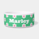 Un heureux et lumineux motif de marguerite rétro dans les tons vert et rose pâle. Cette conception peut être personnalisée avec un nom ou une phrase. Un grand cadeau personnalisé pour un nouveau propriétaire d'animal de compagnie.