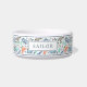 Cet élégant bol d'alimentation pour animaux de compagnie abrite un motif coloré de l'océan, qui comprend diverses baleines, un narval, des algues et des éclaboussures, sur un arrière - plan blanc. Facile à customiser avec le nom de votre ami furieux !