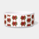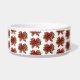 Boule personnalisée avec un arc de Noël festif en rouge et or. Entourée de fleurs de poinsettia, de décorations de pin et de Noël.