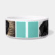 Arrière - plan turquoise abstrait moderne avec le nom du chien en écriture noire et 2 photos. Ce bol de chien est livré avec un nom de chien en script noir et 2 photos - personnalisez le bol avec le nom de votre chien et insérez deux de vos photos dans le modèle.