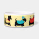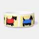 Customisez ce plat de nourriture pour animaux de compagnie pour montrer votre amour des chiens écossais Terrier et personnalisez avec le nom de votre chien au centre sur un arrière - plan jaune. Le design coloré est composé de 6 chiens écossais noirs dans un assortiment coloré de vêtements de chien et sur un arrière - plan rouge. Ces écossais mignonnes et adorables portent des manteaux ou des tee - shirts en chandail de chien colorés et l'un d'eux a un casquette de luge. Les couleurs sont le rouge, la lavande, le violet, le jaune, le bleu turquoise turquoise, le vert citron et l'orange avec empreintes de pattes, étoiles, rayures, chèques et motifs de flocon de neige. Ces chiens fantaisistes et branchés sont l'art original de Phyllis Dobbs et feront fondre le coeur d'un amoureux des chiens. Ces écossais pour animaux domestiques sont à la fois individuellement et sur des blocs colorés avec des bordures pour coordonner les produits. Tous sont entièrement personnalisables pour en faire votre propre !