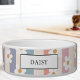 Ce bol à fleurs est décoré d'un motif de marguerites blanches sur un arrière - plan rayé pastel. Facilement personnalisable avec le nom de votre animal.