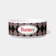 Un motif de Jacquard noir et gris décore ce bol de compagnie de style rétro classique. Personnalisez ce bol alimentaire pour animaux en changeant le nom en fonction de vos besoins. Le design est issu de l'art original.