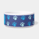 Un chien parfait os & empreintes de pattes bol personnalisé pour votre compagnon canin. Customisez d'écrire le nom de votre chien sur ce bol pour un grand gardien et pour que votre chien profite pour longtemps à venir. Le bol est de différentes nuances de bleu.