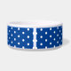 Bol pour Animal de Compagnie en Céramique Personnalisé avec Motif à Points Bleu Marine et Blanc et Os de Chien