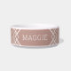 motif rose en faux parties scintillant couleur or-neutre, avec un motif carré géométrique moderne avec votre nom de chat ou de chien personnalisé à l'intérieur d'un cadre boho tendance d'inspiration art déco.
