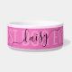 Bubblegum bowl rose chien avec "BEST DOG EVER" et le nom de votre chien customisé dans un script de calligraphie chic et élégant police texte superposition. Entrez le texte personnalisé que vous souhaitez pour l'arrière - plan et la couche supérieure du texte pour créer votre propre nourriture pour animaux de compagnie en céramique rose personnalisée ou bol d'eau. Voir notre collection de bols de coordination et obtenir un set!