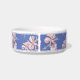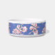 Pour les animaux de compagnie ayant le plus d'aloha, ce mignon bol de chien ou de chat inspiré de l'île présente un motif de fleurs tropicales d'orchidées et de feuillage botanique dans les tons rose roux, lavande et bleu sur un arrière - plan bleu français. Personnalisez avec le nom de votre animal en lettres bleu foncé.