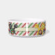 Chats de Noël mignons avec chapeau de Père Noël festif, cadeaux et ornements sur sucre de canne en diagonale rayé arrière - plan en rouge et vert. Utilisez nos outils pour customiser la bannière Poinsettia kitty avec votre Nom de Chat pour une touche personnelle.