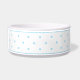 Un motif simple et mignon à pois bleu clair associé à une silhouette d'os de chien bleu. Il y a une zone de texte personnalisable pour le nom de l'animal sur l'os. La police est une belle police script de couleur blanche. Le haut et le bas ont une bordure bleu clair.
