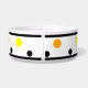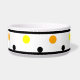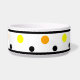 Polka colorée géométrique pochée bol pour animaux de compagnie. Trim double bordure noir avec points orange, jaune, noir contre arrière - plan blanc. Des formes circulaires fraîches et tendance, lumineuses et amusantes. Cliquez pour personnaliser et customiser les couleurs des points, si vous le souhaitez. OEuvre originale de TamiraZDesigns. www.zazzle.com/tamirazdesigns