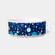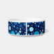 Boule d'animaux de compagnie en blanc avec une impression d'accent dans un motif de points bleus. Choisissez dans un bol de taille moyenne ou grande. Customisez ce bol et ajoutez du texte ou du travail de conception ou achetez tel quel.