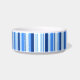 Boule d'animaux de compagnie en blanc avec une impression d'accent dans un dessin à bandes bleues. Choisissez dans un bol de taille moyenne ou grande. Customisez ce bol et ajoutez du texte ou du travail de conception ou achetez tel quel.