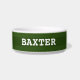 Vert chasseresse rayé d'une teinte plus claire de vert. Bol pour chien élégant, classique et beau avec nom personnalisable en blanc.