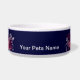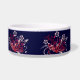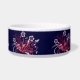 Ce dessin est un tatouage de nombreuses fleurs, feuilles et vignes différentes. Quelques papillons volent autour des fleurs. Les couleurs du tatouage sont de couleur rouge avec un soupçon de pêche. Il y a 4 motifs sur le plat qui contournent les côtés du plat. Ce plat pour chien peut être customisé avec votre nom d'animal de compagnie sur le devant du plat.
