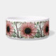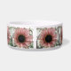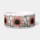 Ce magnifique bol d'animaux de compagnie présente une belle photo d'un tournesol rose pâle. Le tournesol est naturellement rose et les pétales ont un anneau extérieur rose pâle et un anneau intérieur rose plus foncé. Le milieu où les graines sont noires. Cette photo a été prise dans un jardin.