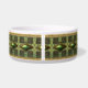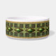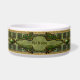 Des tons verts et or avec des bijoux et des parchemins rappelant l'art aztèque embellissent ce bol pour animal de compagnie choyé. Ce design unique est disponible en taille de plat pour chien ou chat. Zone de texte sur médaillon avant est prêt pour vous de customiser avec votre nom de chat ou de chien.