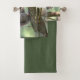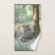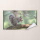 Cet ensemble de serviettes présente des couleurs douces et un écureuil qui mange son déjeuner dans la forêt du Connecticut.