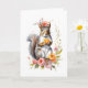 Écureuil adorable entouré de jolies fleurs sur cette carte de vœux blanche.