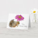 Un écureuil tenant une grande fleur rose. Customisez cette carte d'anniversaire.