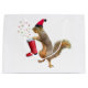 Un écureuil juge une botte rouge pleine de la sucrerie de menthe poivrée. Un sac parfait pour donner de cadeau.