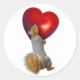 Un petit écureuil vole sous le poids d'un grand coeur rouge. Parfait pour les autocollants Saint-Valentin.