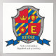 Monogramme de style Chevalier E affiche de nom d'art parfait pour une chambre à coucher ou salle de jeux pour garçons dans les tons rouge, jaune, bleu et gris. Personnalisez avec le nom et le nom de votre enfant signifiant une touche vraiment personnalisée à la chambre ou à la crèche de votre enfant, cet exemple est pour le nom Eddie Rich dans l'amitié Dignified et la protection. Poster imprimé idéal pour un cadeau à un nouveau bébé, pour un baptême, un nom de bébé ou un cadeau de baby shower. Dessin, graphisme et design uniques par Sarah Trett. www.sarahtrett.com pour www.mylittleeden.com