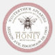 Ce étiquette blanc et de couleur rose à bords kraft a des champs modifiables pour se conformer aux exigences énumérées par le Conseil national du miel : le mot miel, votre nom d'entreprise, votre nom personnel, votre adresse et le poids net du miel en grammes et onces doit être inclus si vous vendez votre miel. Inclut l'illustration vintage de l'abeille et la bordure pointillée. HONEY est écrit dans un texte en or ciselé. Conversions de poids net miel : 8oz (227g), 12oz (340g), 16oz (454g), 32oz (907g), 5lb (2,27kg).