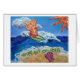 Le tableau montre un ange surfeur orange brillant sur un océan bleu au soleil étincelant. Seafoam se lave sur le sable entourant les mots "Effacer le cancer". Un coquillage rose est installé sur la plage. La peinture a été rendue en acrylique et parsemée de parties scintillant pour la texture et la brillance. Faites des cartes de voeux sur mesure pour des messages personnalisés de bien-être.