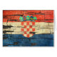 Caractéristiques de conception ce uniques le drapeau de la Croatie qui a été vieillie et portée. Les grandes fissures apparaissent dans la peinture du drapeau croate avec des morceaux manquant ce vieux grain en bois d'exposition dessous. Ce beau motif patiné est une manière élégante de montrer votre fierté et patriotisme.
