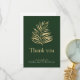 Express votre gratitude avec un carte de remerciements mariage raffiné qui présente un magnifique design feuille de palme doré, dans un cadre vert profond. Cette carte comprend un espace pour présenter une photo de votre journée spéciale qui vous tient à coeur et vous permet de recevoir des messages et des noms personnalisés, ce qui en fait un souvenir sincère pour vos invités. La touche luxueuse crée un gardien élégant pour honorer le soutien et l'amour partagés sur votre célébration. Veuillez noter que la couleur or est imprimée.