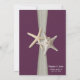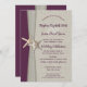 Jolie étoile de mer et gris argenté burlap design créent un look unique pour votre plage ou mariage de destination. Elégante invitation de mariage à la plage d'étoiles de mer d'aubergine foncée. Cette invitation est entièrement imprimée. Il n'y a pas de véritable burlap ni d'étoiles de mer.