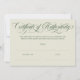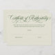 Élégant certificat d'authenticité en coquille d'oeuf et vert olive avec un script de calligraphie tourbillonnant. Certificat d'authenticité blanc cassé et vert olive foncé avec un élégant script tourbillonnant que vous pouvez personnaliser avec votre nom et, sur le dos, site Web, médias sociaux ou webshop.
