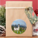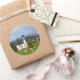 Autocollant photo rond de l'église caractéristique du village de Seefeld avec les Alpes dans l'arrière - plan. C'est une station de vacances et de ski au Tyrol en Autriche.