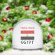 Le design de ce hlobe à neige présente le drapeau égyptien avec le mot EGYPT en dessous en lettres noires. Il y a un endroit pour mettre son nom au-dessus du drapeau, en lettres rouges, pour une touche personnalisée. Ou, ajoutez le nom de quelqu'un d'autre pour un cadeau. Un cadeau de vacances réfléchi. Un étouffeur de stockage amusant, aussi.