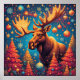 Un élan fantaisiste orné de décorations de Noël colorées, entouré de sapins, d'ornements et d'un paysage festif joyeux, créant une atmosphère de vacances vibrante dans un pays des merveilles hivernal.