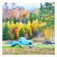 Cet agrandissement photo présente un vieux camion bleu sur une ferme du Vermont en automne. Idéal pour une mancave.