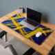 Upgrade your workspace or battle station with this high-energy futuristic design. The striking contrast of neon yellow and deep electric blue creates a sense of speed, technology, and modern digital art. It is an ideal aesthetic for software developers, hardcore gamers, and anyone who appreciates a dark-mode, cyberpunk aesthetic at their desk. The chaotic yet geometric arrangement of glowing light trails provides a stunning visual backdrop that won't distract from your monitors but will definitely impress your stream viewers or colleagues.