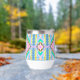 A vibrant and energetic geometric design featuring a fusion of soft baby blue, candy pink, and electric neon green. This intricate tribal-inspired pattern creates a rhythmic kaleidoscopic effect that is both retro and futuristic. Perfect for those who want to add a bold, colorful, and unique artistic touch to their everyday accessories.