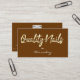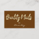 Bienvenue à l’ère où un carte de visite n’est pas seulement une formalité, c’est un portail. Voici le carte de visite brun et or pour Quality Nails, qui combine l'allure intemporelle d'un script élégant avec la commodité de pointe d'un code QR. Ce n’est pas seulement un carte de visite, c’est une révolution manuelle dans l’interaction avec le client. Décorée dans un brun luxueux aux accents dorés, cette carte murmure une sophistication classique et moderne. Le script, fluide et gracieux, évoque un charme d'antan, suggérant que l'art des ongles parfaits est autant une question de tradition qu'une question d'innovation. Le voyage émotionnel commence au moment où cette carte vous glisse dans les mains. La chaleur des couleurs et la finition lisse du stock de carte parlent d'une entreprise qui valorise la qualité et prend soin des détails. C’est rassurant, comme la douce touche d’un technicien de l’ongle qui se prépare à transformer ses mains en oeuvres d’art, mais c’est le code QR qui transforme ce passage d’un simple carte de visite à un récit de commodité et de connexion. Un clic, et vous êtes transporté vers une destination numérique où les rendez-vous peuvent être réservés, les conceptions peuvent être parcourues, et le monde des clous de qualité s’ouvre devant vous. Ce n’est pas seulement efficace, c’est magique, transformer l’acte banal de réserver un rendez-vous en une expérience numérique engageante. Imaginez les histoires qui pourraient être racontées autour d'une telle carte dans une fonctionnalité du New York Times—peut-être une discussion sur la façon dont les entreprises combinent la technologie avec les services traditionnels pour améliorer l'expérience client. Cette carte pourrait symboliser une nouvelle ère de fiançailles client, où chaque interaction est une opportunité de se connecter plus profondément, pas seulement par le biais des services, mais par la manière même dont ces services sont accessibles. Sur les médias sociaux, le buzz pourrait être tout aussi engageant. Des hashtags comme #TechTouch, #NailTheFuture, et #ScanForStyle pourraient circuler, attirant un public féru de technologie qui valorise à la fois la beauté et l'innovation. Chaque numérisation, chaque partage, chaque rendez-vous effectué via cette carte amplifie le récit d’une entreprise aussi engagée dans la qualité du service que dans l’interaction avec le client. Ce carte de visite fait plus qu'informer ; il invitation et inspire. Elle n'est pas distribuée ; elle est activement partagée, une clé pour déverrouiller une intégration transparente des services de beauté et de la commodité numérique. Dans le vaste monde de l'art de l'ongle, où les détails définissent l'artisanat, cette carte se distingue comme un chef-d'oeuvre du marketing, un exemple de la façon dont les entreprises traditionnelles peuvent prospérer à l'ère numérique en adoptant l'innovation sans perdre leur touche personnelle.