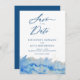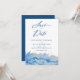 Vos invités peuvent enregistrer votre date d'occasion spéciale avec cette personnalisable enregistrer la carte à plat date. Ce design élégant et gracieux est peint à la main aquarelle dans les tons bleu clair, bleu classique et bleu marine complété par des touches d'or (feuille simulée). Le design abstrait ressemble au rivage, parfait pour un événement à thème plage, océan ou nautique. Le texte est en bleu classique et peut être customisé pour votre mariage, ou tout autre événement spécial.