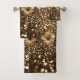 une célébration visuelle captivante de la beauté de la nature entrelacée avec une ambiance éthérée. L'oeuvre présente quatre fleurs d'hibiscus d'or, sur un élégant décor de rêve de bokeh chatoyant, où des orbes dorées de lumière dansent doucement, créant une atmosphère enchanteresse qui évoque des sentiments de tranquillité et de luxe.