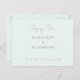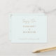 Faire-part élégant et simple. Photo au dos en noir et blanc. Filtre utilisé pour changer l'image en noir et blanc. Texte doré. Fond bleu menthe.