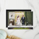 Un design élégant qui présente une photo pleine page des mariés et deux photos encadrées sur le devant avec un espace pour votre message personnalisé de remerciement au dos. Le style élégant en noir et blanc est intemporel et classique.