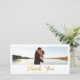 Envoyez votre message de remerciement mariage en tant que nouveaux mariés à vos amis et votre famille en utilisant ce carte de remerciements élégant et moderne avec les mots "Merci" écrit dans une feuille d'or (effet photo imprimé) en caractères gras écriture typographique. Design par Elke Clarke© Disponible à l'adresse www.zazzle.com/monogramgallery. Remplacez l'exemple de photo par votre propre photo mariage. Autres couleurs disponibles.