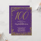 Elegant 100th Purple Birthday Invitation Gold